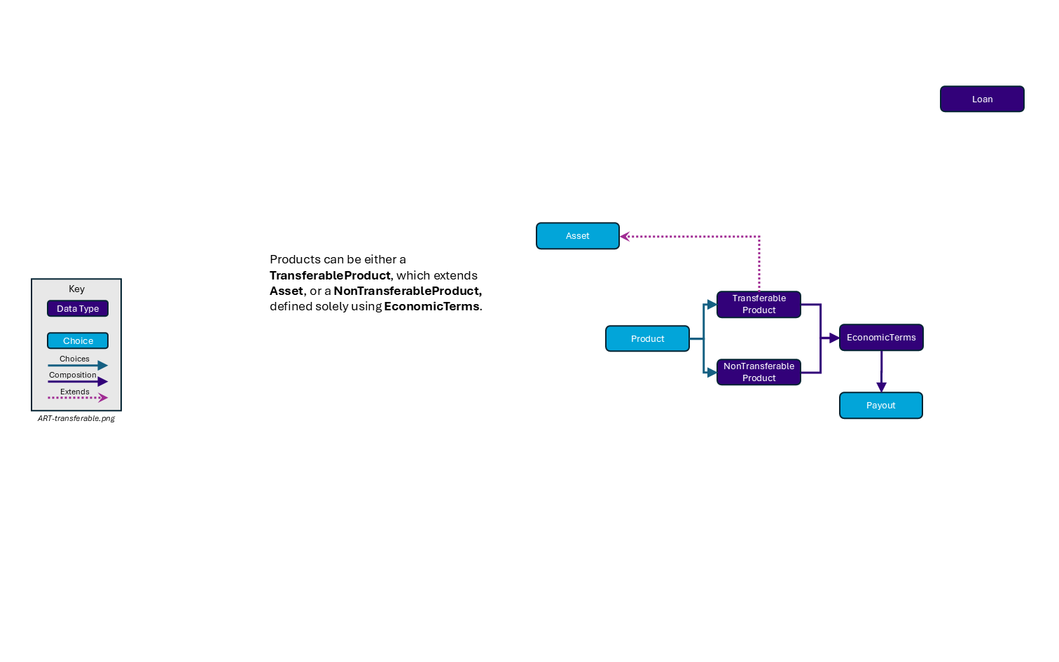 identifier, the optionaldeliveryTerm,optionTypeandstrikeattributes can be populated. - Loan: An Asset that represents a loan or borrow obligation. As loans rarely have standard industry identifiers,